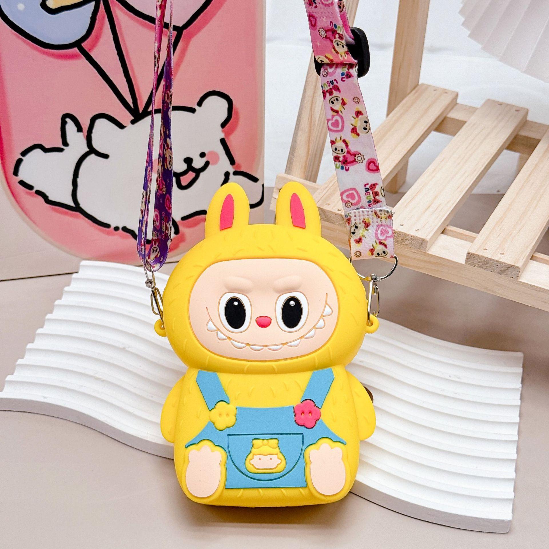 Новая детская милая сумочка-принцесса Labubu среднего размера, кошелек для монет, мультяшная портативная монетница, силиконовая сумка через плечо жёлтый