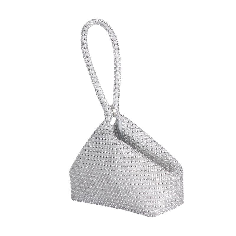 Новая европейская и американская блестящая сумка с бриллиантами и круглым треугольным дизайном, женская легкая роскошная модная сумка через плечо, сумка-цепочка белый