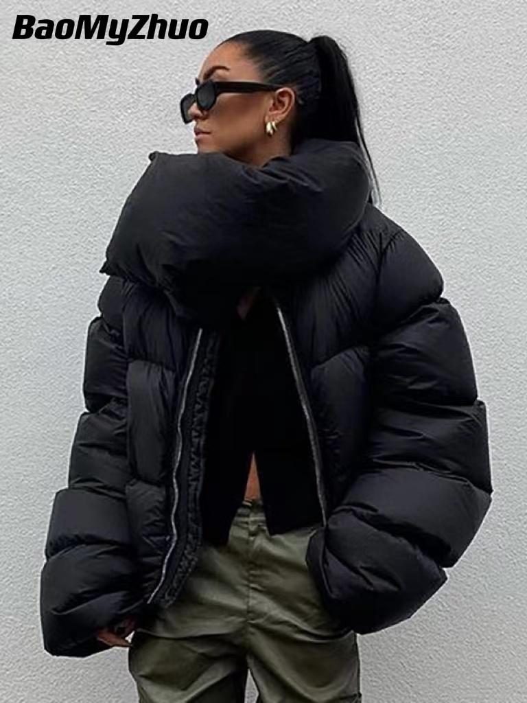 Новая женская зимняя куртка с воротником-шарфом, однотонная, толстая, теплая, свободная, хлопковая, пузырчатая, женская, черная, пуховая, парка, повседневная верхняя одежда L
