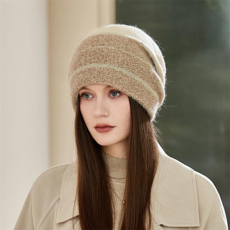 Новая женская зимняя шапка из кроличьего меха, теплая шапка-бини для женщин, повседневная уличная вязаная шапка ONE SIZE бежевый