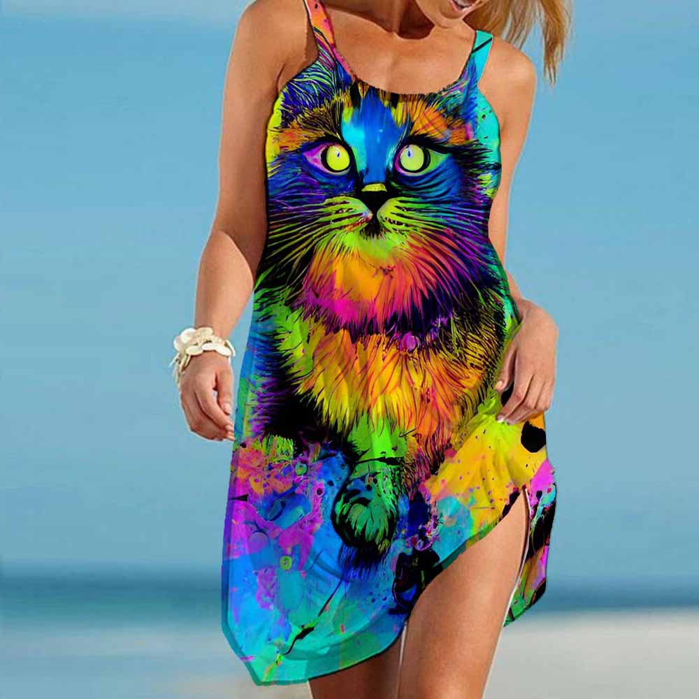 Новая женская мода 2025 года, новое летнее повседневное мини-платье с принтом, пляжный стиль, элегантное женское платье без рукавов с принтом в стиле поп-арт XL