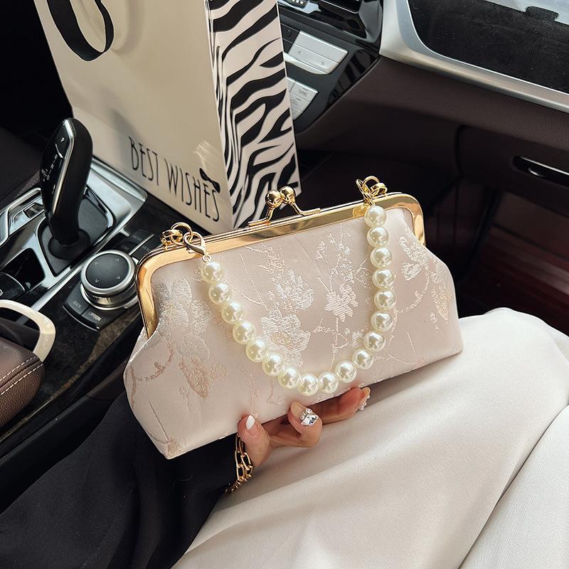 Новая женская модная универсальная шелковая легкая сумка через плечо с цепочным ремешком в китайском стиле с жемчужными бусинами
