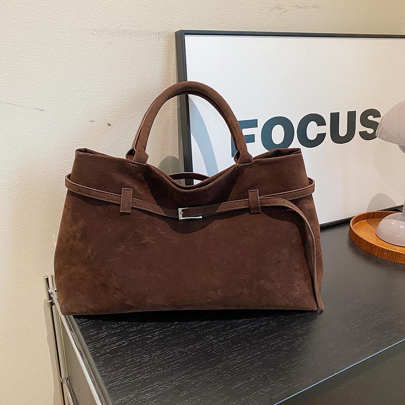 Новая женская сумка, модная универсальная ретро-сумка из замши, сумка для поездок на работу, нишевый дизайн, портативная сумка через плечо коричневый