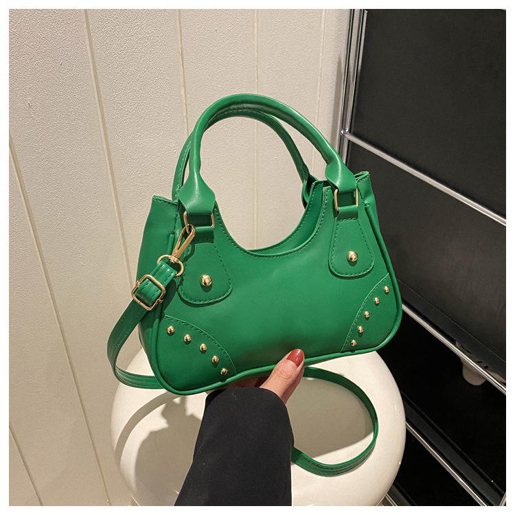 Новая женская сумка подмышкой 2024 года, плиссированная сумка через плечо с полумесяцем для матери, женская сумка в европейском и американском стиле с заклепками в стиле ретро с изображением локомотива зелёный