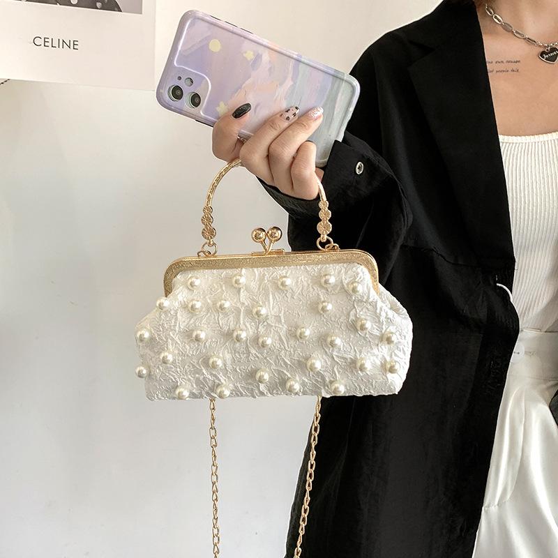 Новая женская сумка через плечо, именная сумка на цепочке, украшенная жемчугом, модная женская маленькая квадратная сумка белый