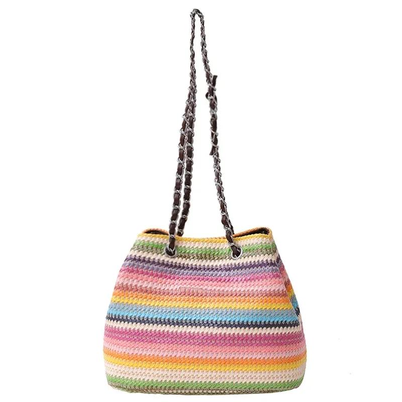 Новая женская сумка через плечо с замком из ткани, в полоску, с цепочкой, модная, через плечо, мягкая, универсальная, сумка-ведро для поездок на работу