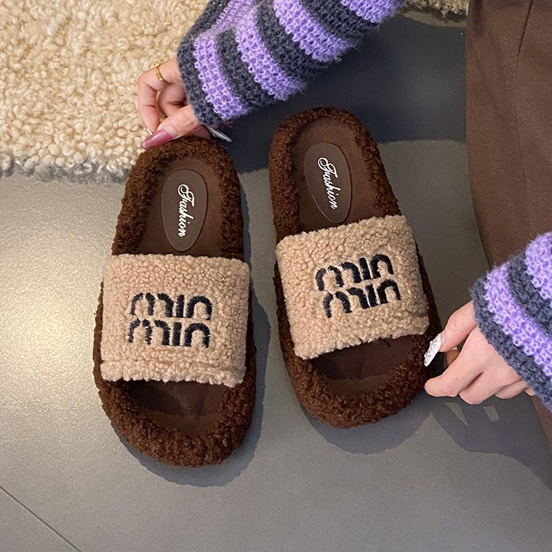 Новая зимняя мода на толстой подошве, универсальные нескользящие тапочки из овечьей шерсти, женские модели 40-41 (one size smaller)