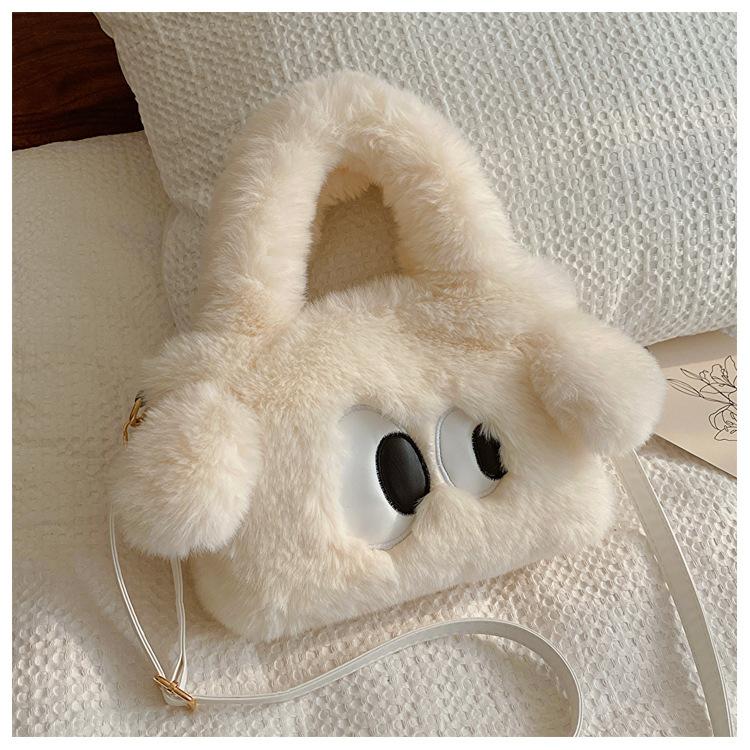 Новая зимняя сумка Mao Mao женская сумка Tide с милым мультяшным щенком и плюшевой переносной сумкой через плечо, маленькая квадратная сумка белый