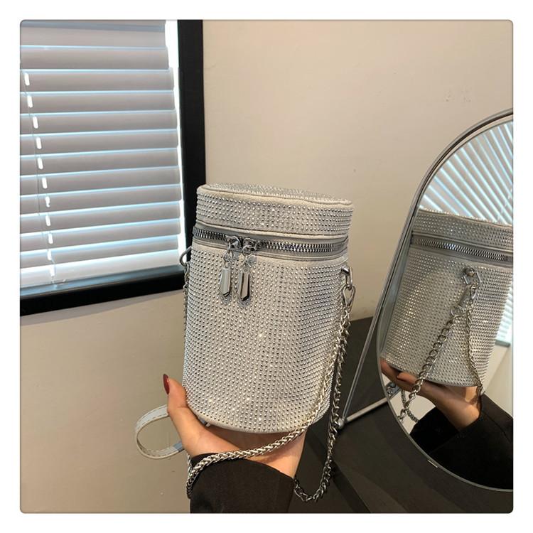 Новая иностранная газовая яркая сумка-ведро с бриллиантами женская модная цепочка портативная сумка для помады мобильный телефон универсальная сумка-мессенджер цилиндр маленькая сумка белый
