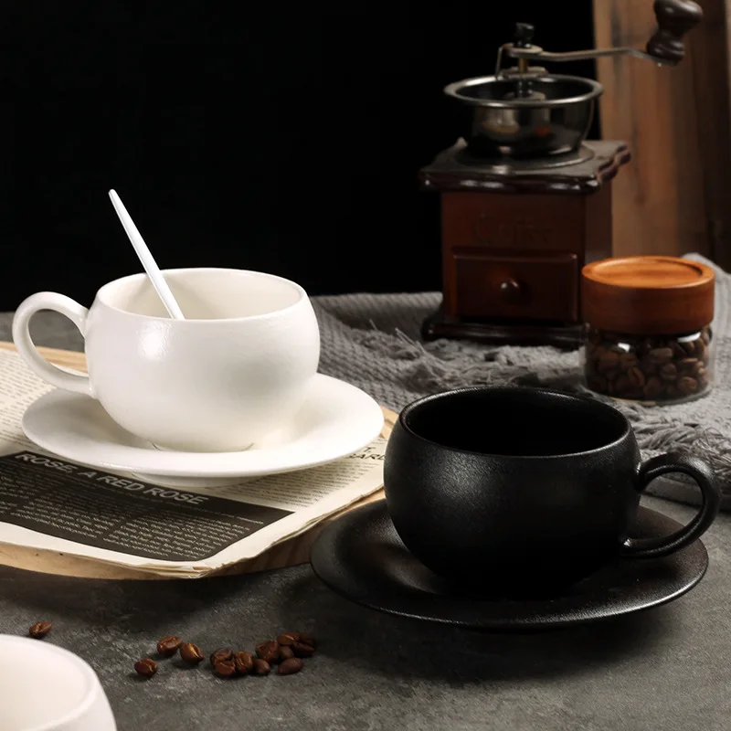 Новая керамическая чашка для яиц, кофе, кружка с ручкой в стиле ретро, черно-белая чашка для пары, простая чашка, блюдце, подарок