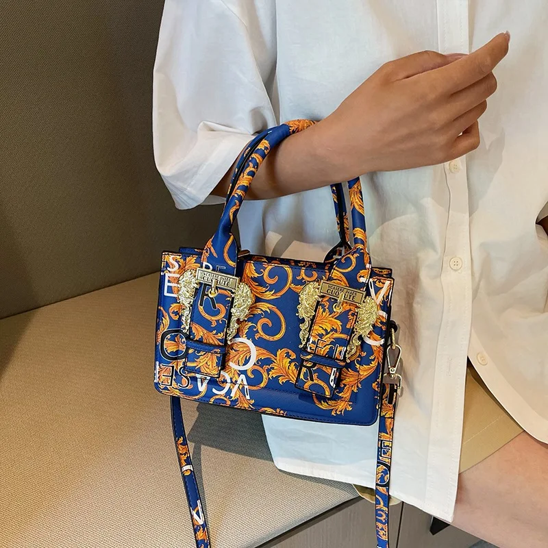 Новая классическая сумка-пучок в европейском и американском стиле с цветным принтом и пряжкой, сумка через плечо, мини универсальные маленькие квадратные сумки