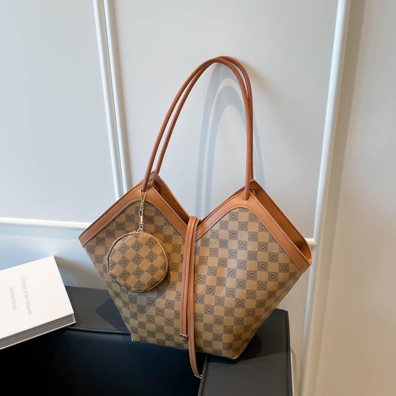 Новая корейская женская сумка-тоут в клетку премиум-класса большой вместимости, ретро-модная, легкая, роскошная, для поездок на работу коричневый