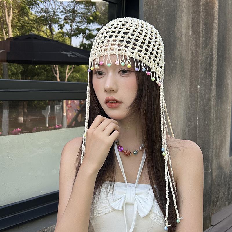 Новая красочная шляпа баотоу с кисточками из жемчуга, ручная вязка крючком, ажурная, в этническом стиле, с кисточками, пляжная шляпа