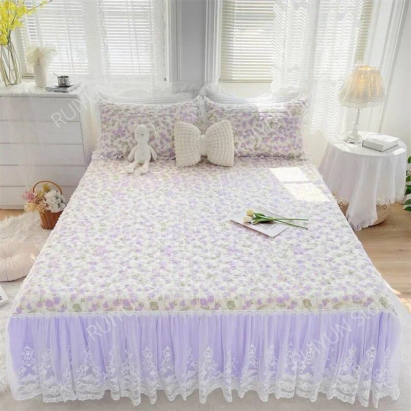 Новая кружевная юбка принцессы из 100% хлопка, покрывало на кровать, простыня, утолщенная юбка-кровать, нескользящий чехол для матраса, защитная юбка с рюшами 1pc Skirt 120x200cm