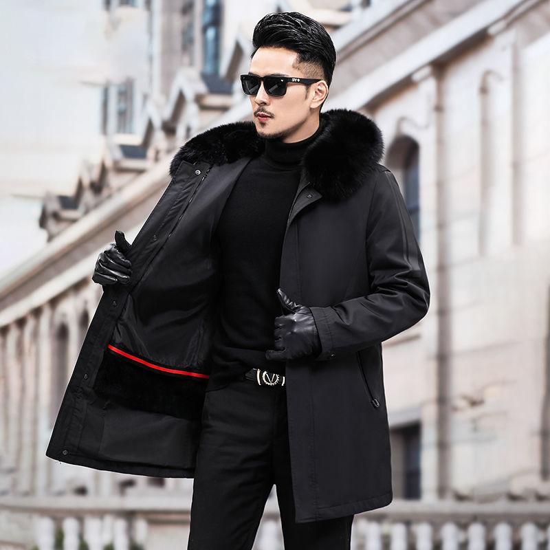 Новая куртка Pie с подкладкой из кроличьего меха, мужская утолщенная съемная куртка из лисьего меха с воротником из меха лисы 5XL