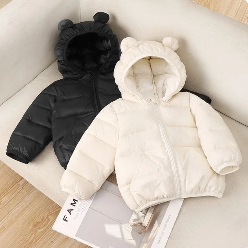 Новая легкая куртка для мальчиков, зимние теплые пальто, детская осенняя верхняя одежда с капюшоном для девочек, спортивная повседневная одежда для детей 0-5 лет