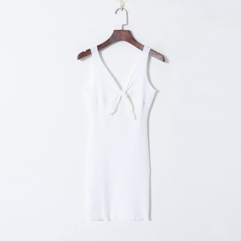 Новая летняя женская одежда Мода Европейский и американский стиль Сексуальное глубокое V-образное декольте Декорация шнуровкой Высокая талия Стройнящее Без рукавов Универсальное платье White S