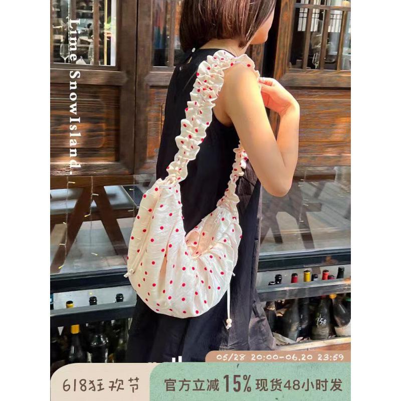 Новая летняя плиссированная кружевная сумка-пельмень в горошек Berry Ripple Flower Shadow , на шнурке, с молнией, кроссбоди из парусины розовый