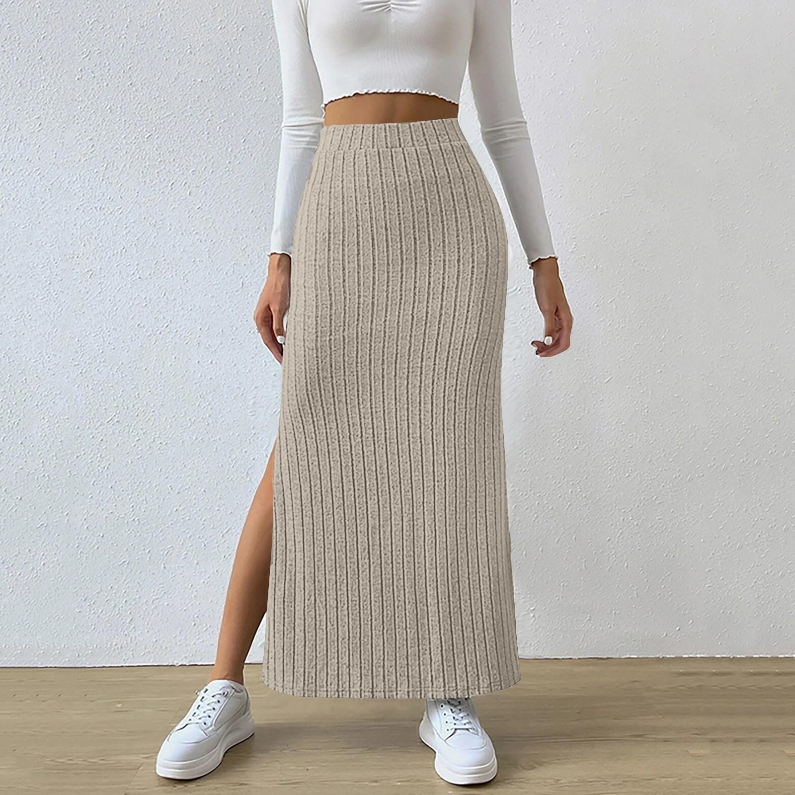 Новая летняя тонкая вязаная юбка с высокой талией и боковым разрезом для женских брюк XXXXL хаки