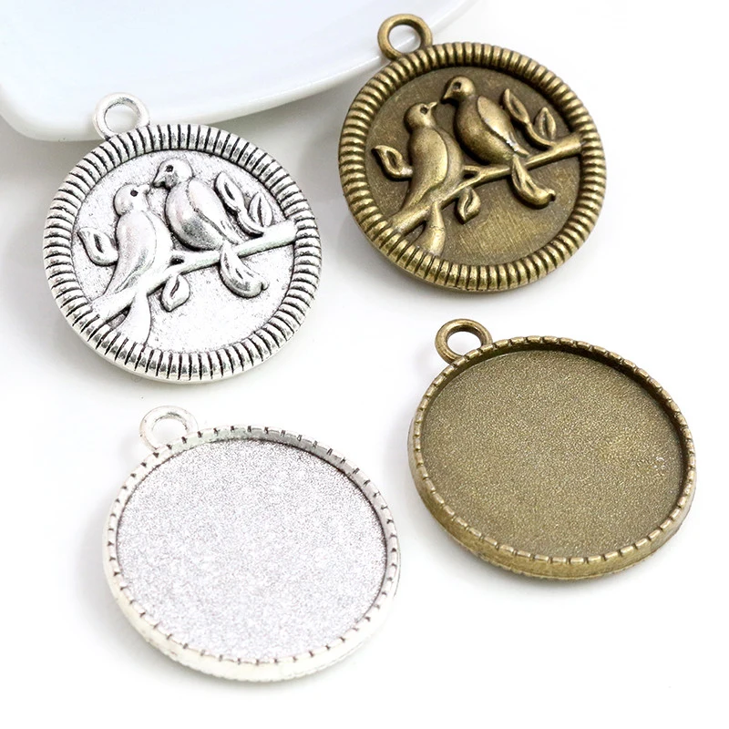 Новая мода 5 шт 25 мм Внутренний размер Античная Посеребренная бронза две птицы кабошон основа Установка Подвески кулон