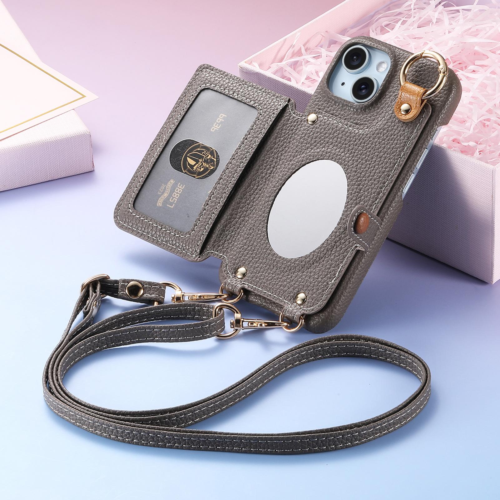Новая модель подходит для чехла для мобильного телефона Apple 16 Pro Crossbody с зеркальным держателем для карт, защитного чехла для iPhone15. iPhone 14 Plus серебряный серый