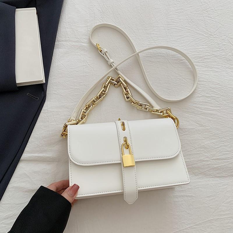 Новая модная высококлассная однотонная цепочка маленькая квадратная сумка универсальная на одно плечо мессенджер женская сумка белый