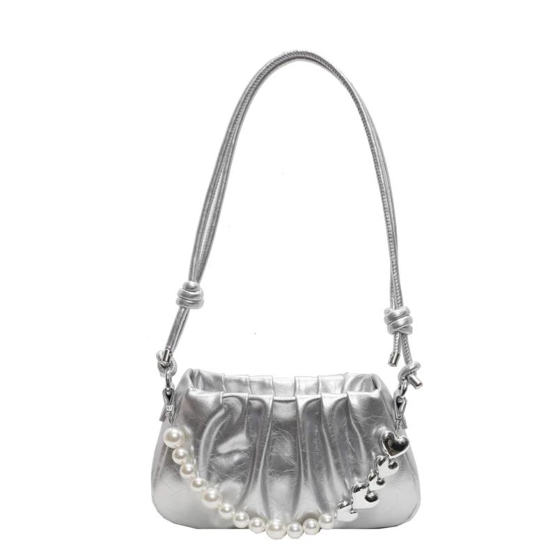 Новая модная женская сумка через плечо с жемчугом высокого качества, универсальная, большая вместимость, сумки под мышками для женщин