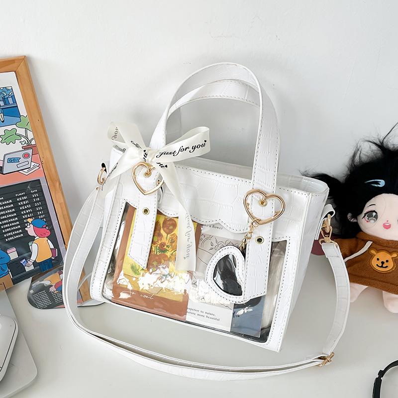 Новая модная сумка Ba Chi Bag с каменным узором, сумка-витрина для куклы, студенческая сумка через плечо, прозрачная женская сумка Love белый