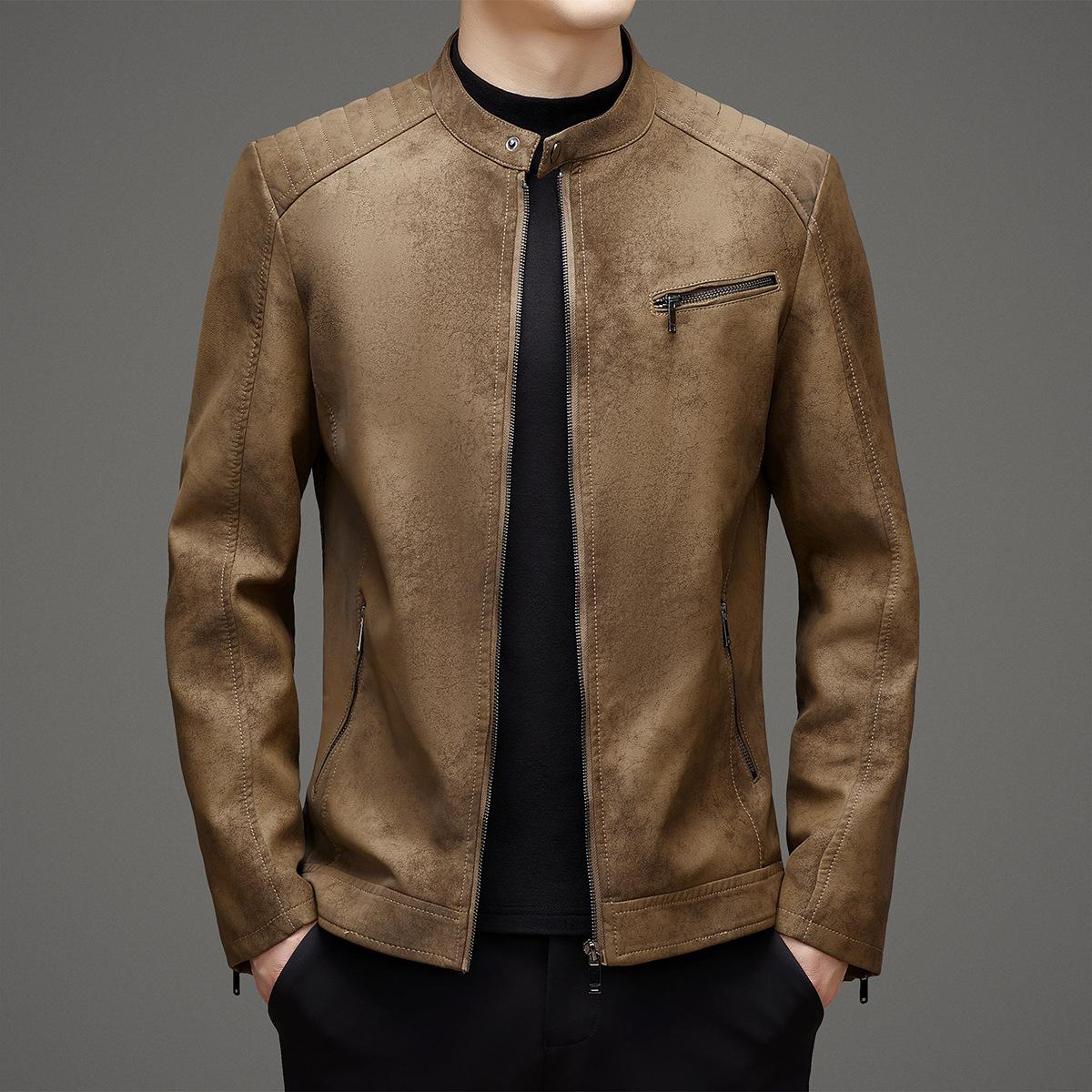 Новая мужская кожаная куртка для мотоцикла, тонкий воротник-стойка, коричневый искусственный кожаный мотоциклетный костюм в стиле ретро L