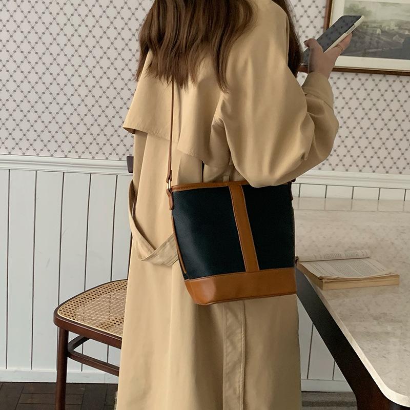 Новая осенне-зимняя ретро модная простая сумка-ведро с текстурными вставками, универсальная сумка через плечо на одно плечо для женщин