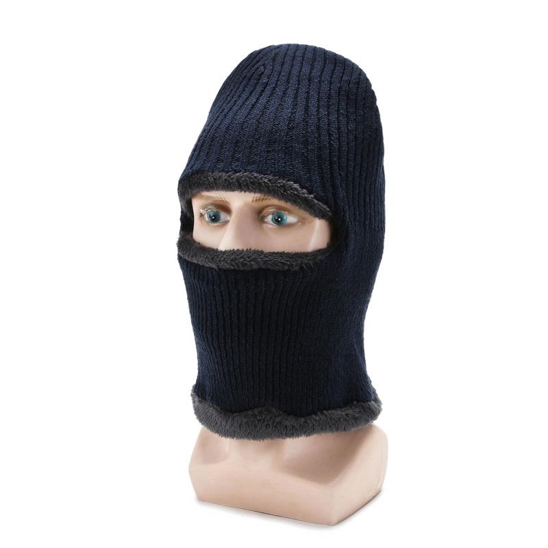 Новая осенне-зимняя шапка из утолщенной теплой шерсти, мужской и женский свитер с интегрированным шарфом, цельновязаная шапка average size тёмно-синий
