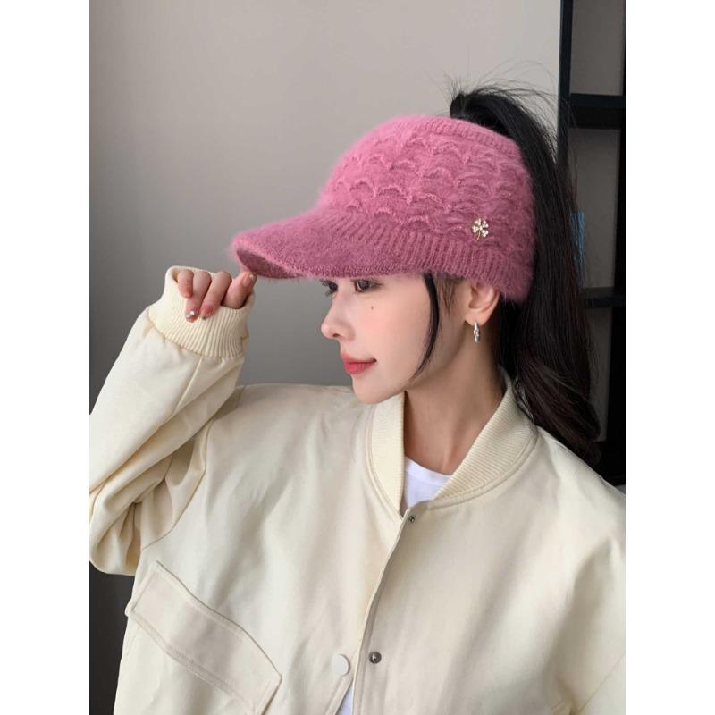 Новая осенне-зимняя шерстяная вязаная шляпа с открытым верхом, утолщенная и теплая, шляпа с большим козырьком, модная, универсальная и не подверженная трендам One Size