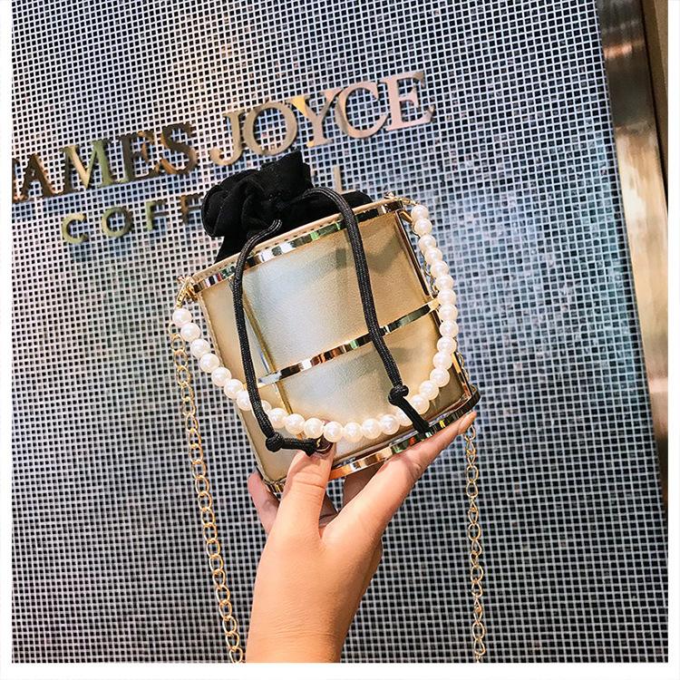 Новая персонализированная переносная обеденная сумка-ведро с полостью, сумка на плечо с цепочкой и жемчугом, сумка в виде клетки для птиц в европейско-американском стиле. золотой