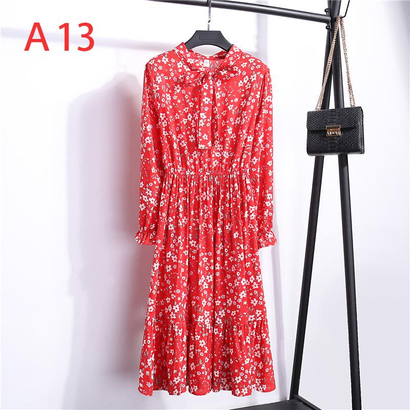 Boho Весна Осень Линия Цветочный принт Платье-бабочка Галстук Шея Длинный рукав Оборка Подол Женские платья