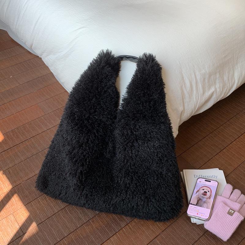 Новая плюшевая сумка большой вместимости для осени и зимы, женская универсальная однотонная сумка через плечо, сумка для поездок на работу чёрный