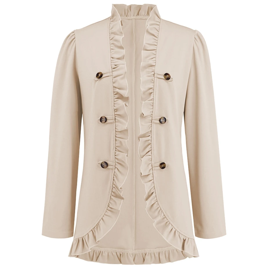 Vintage Ruffle Suit Jacket Men's Fashion Striped Blazer Tops Korean Button Casual Coat Long Sleeve Trajes De Hombre