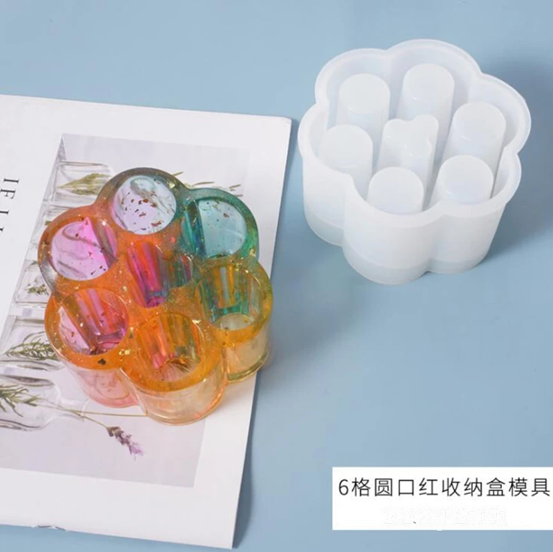 Новая прозрачная силиконовая форма, смола, 6 ячеек, круглая помада, Цветочная коробка, форма для маятника, форма для эпоксидной смолы, коробка для хранения, форма