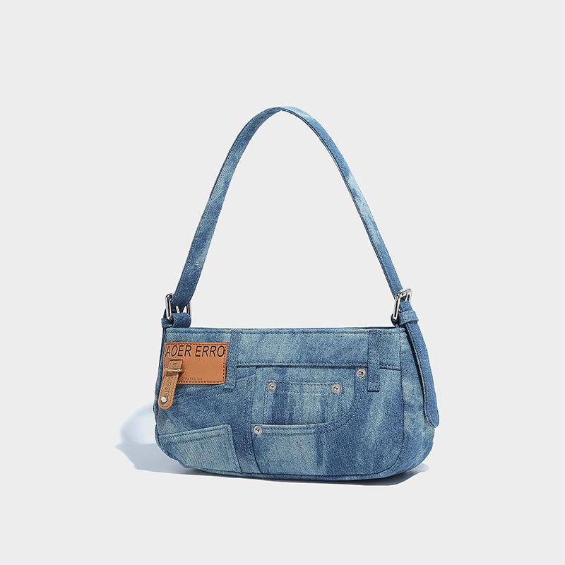 Новая простая и модная одноплечевая сумка из денима с застежкой под мышкой для женщин, универсальная косая сумка для поездок на работу темно-синий