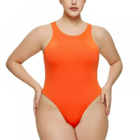 Valcatch Bodysuit for Women Round Neck Sleeveless Ribbed Racerback Tank Tops Orange XL