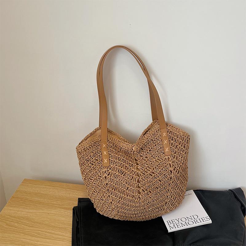Новая ручная плетеная сумка Модная сумка на одно плечо Соломенная плетеная сумка Бумажная веревочная пляжная сумка для отпуска Сумка через плечо Рюкзак-тоут
