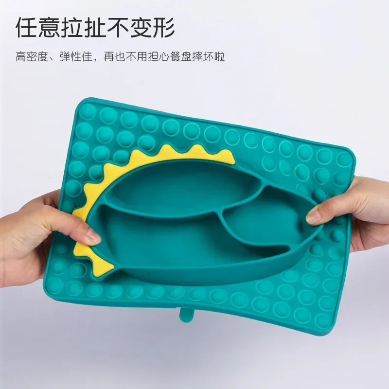 Новая силиконовая тарелка для пищевых продуктов с пузырьками и динозаврами