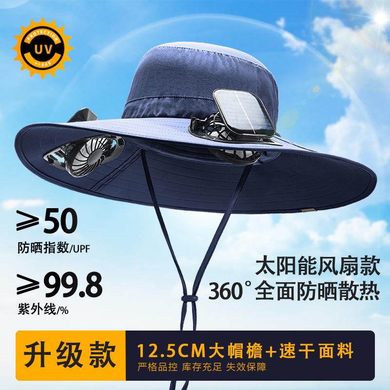 Новая солнечная шляпа-ведро с вентилятором мужская защита от УФ-лучей рыбалка солнцезащитная шляпа для активного отдыха альпинизм солнцезащитная шляпа темно-синий