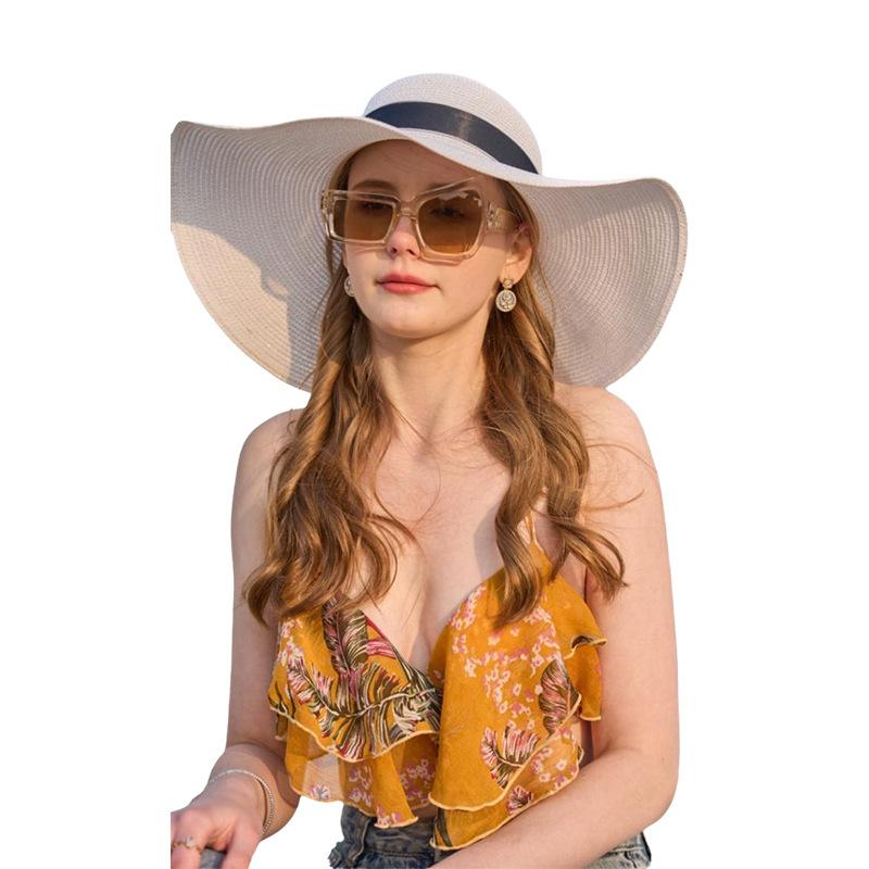 Новая соломенная солнцезащитная кепка с широкими полями для женщин, летняя складная повседневная модная шляпа от солнца с бантом, дышащая уличная пляжная кепка с УФ-защитой от солнца one size:56-58cm
