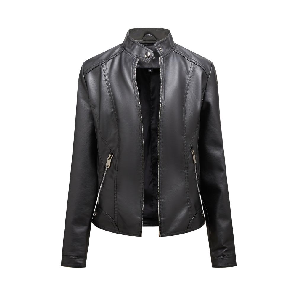 Новая стильная простая повседневная кожаная куртка для женщин с воротником-стойкой на молнии, приталенная мотоциклетная куртка, короткая куртка для женщин L