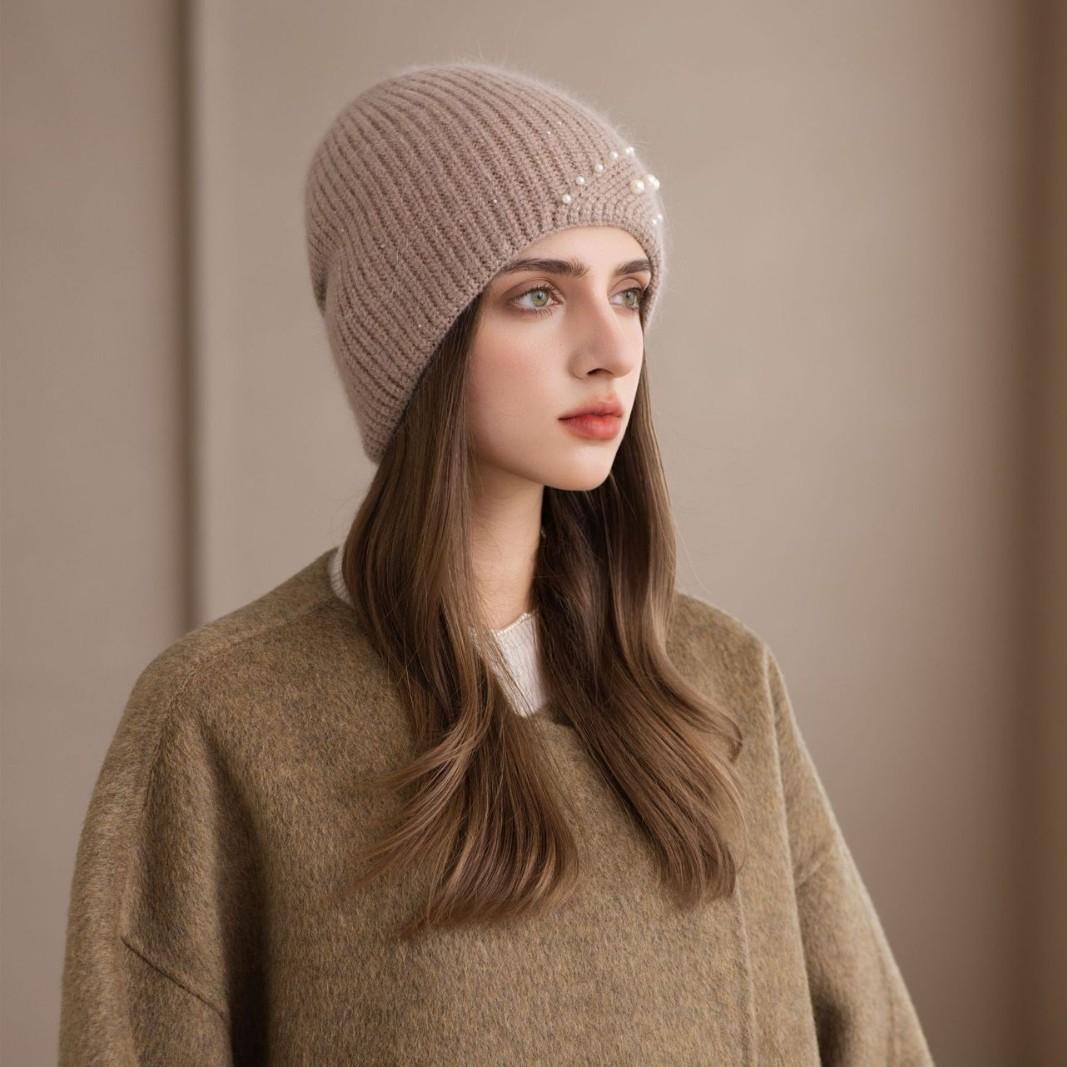 Новая теплая вязаная шапка с защитой ушей на осень и зиму, женская шерстяная шапка хаки