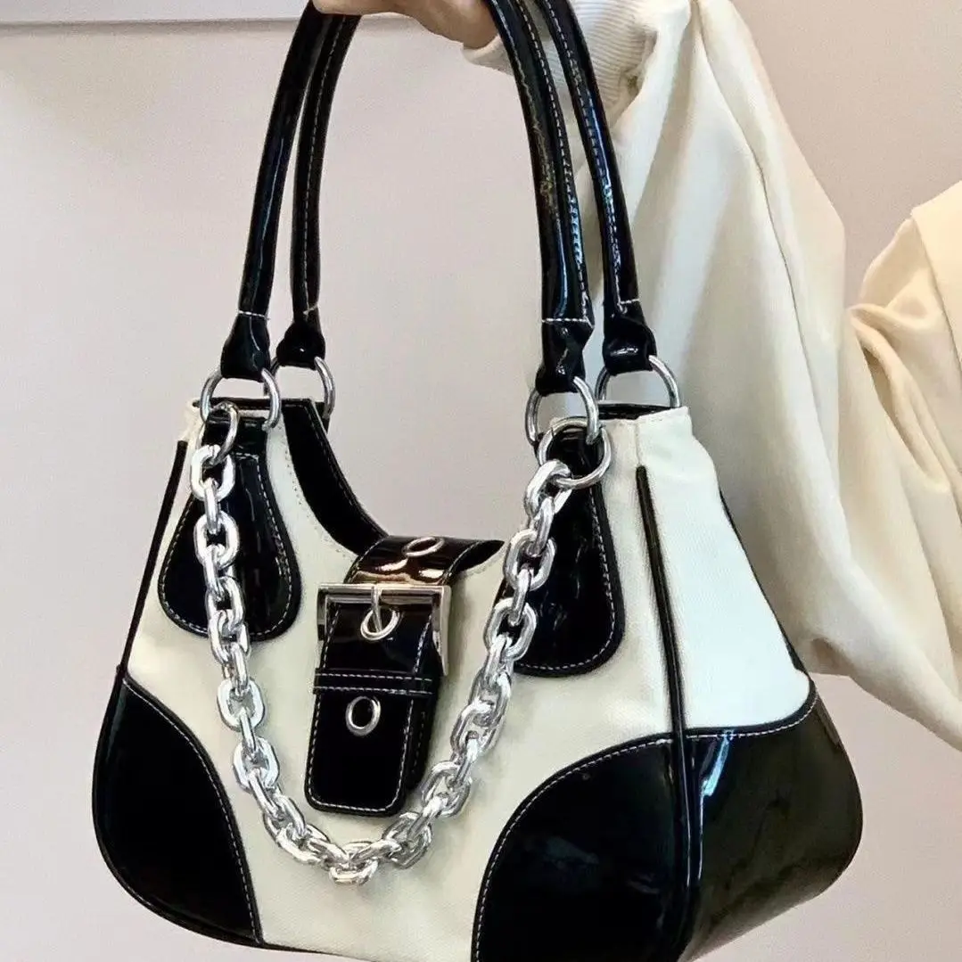 Новая трендовая Женская Роскошная Дизайнерская кожаная Холщовая Сумка на одно плечо, Женский индивидуальный кошелек под подмышку, стильная сумка с цепочкой