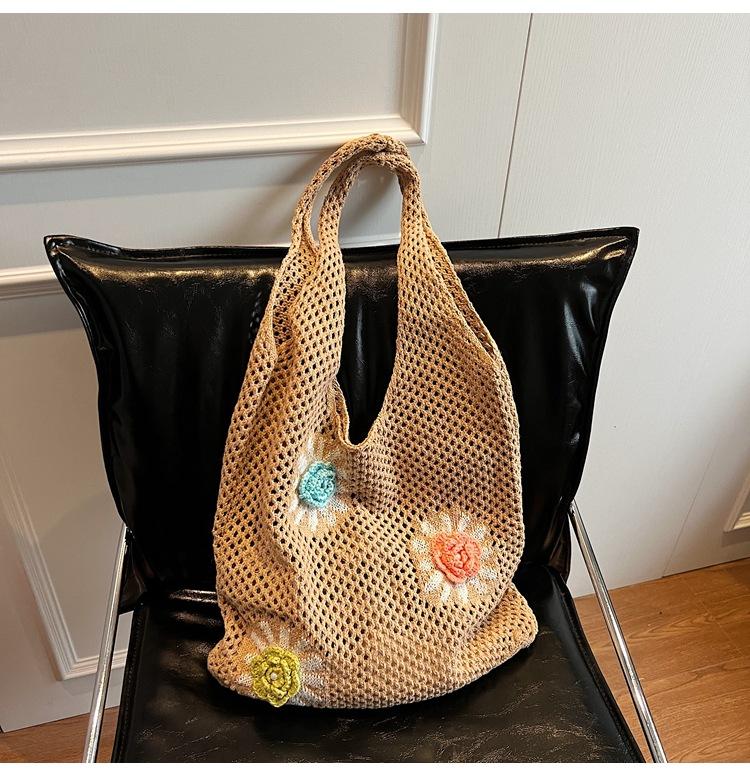 Новая универсальная ленивая ветряная полая ретро трендовая сумка большая вместимость сумка через плечо женская цветочная пляжная сумка хаки