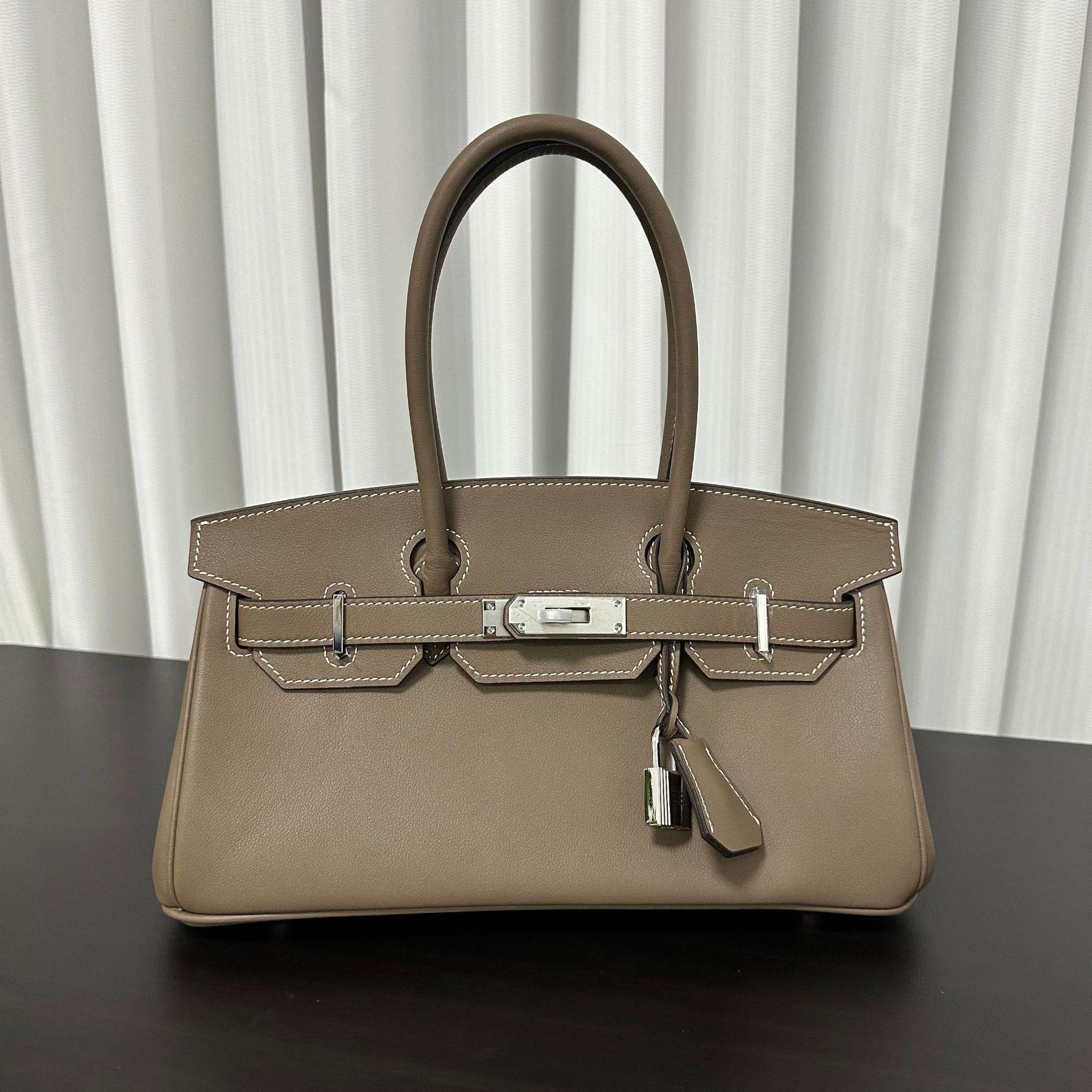 Новая французская сумка-мешок Swift Leather 29 см с горизонтальным платиновым покрытием для носка из коровьей кожи, женская сумка из натуральной кожи 29x13.5x14.5cm светло-серый