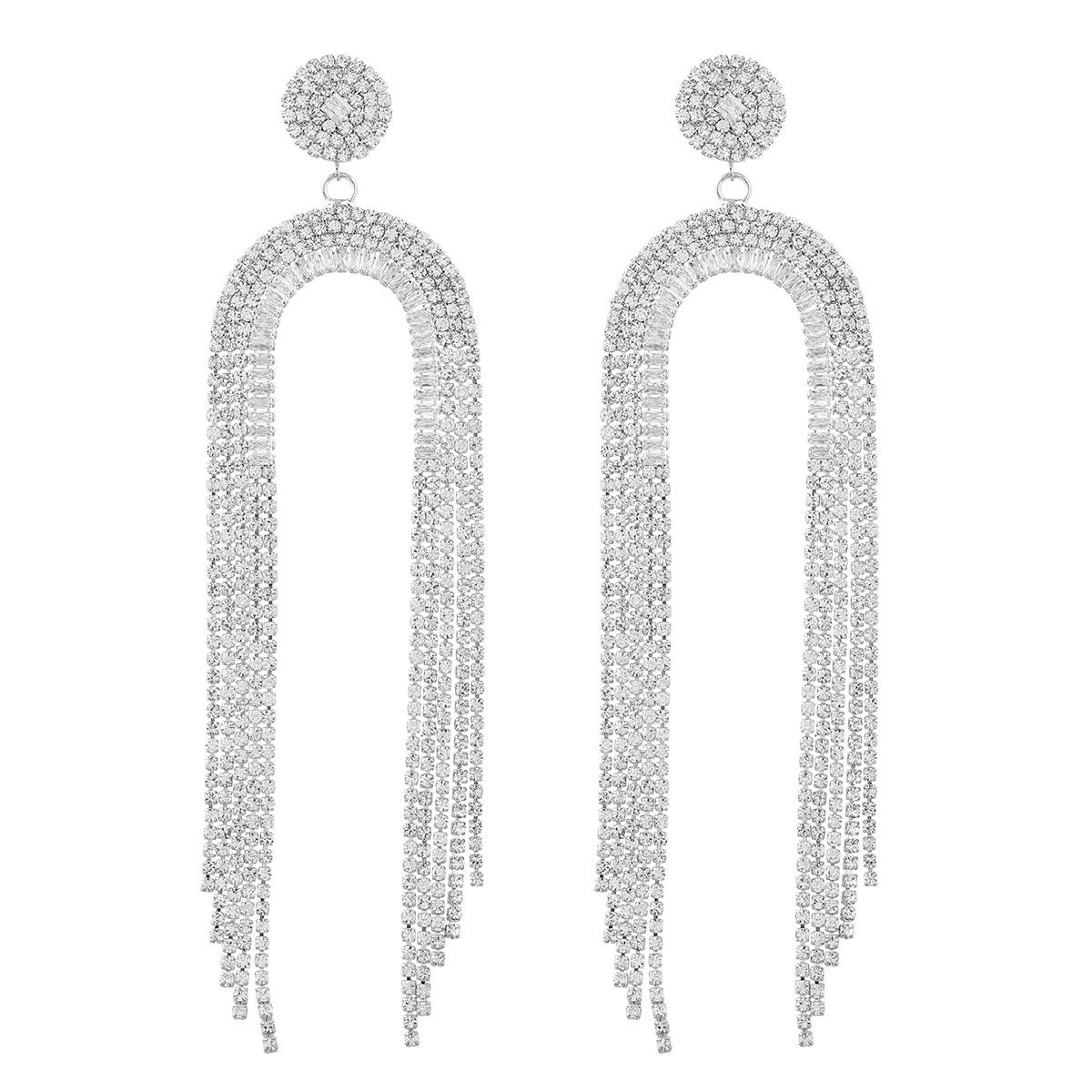 Новая цепочка-коготь из сплава с бриллиантами, длинные серьги с кисточкой, модные женские серьги в европейском и американском стиле, преувеличенные серьги серебряный