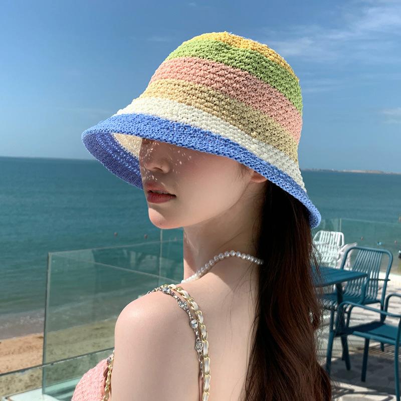 Новая шапка женская вязаная радужная соломенная шляпа летняя дорожная шляпа с козырьком шляпа-панама солнцезащитный козырек Tide ONE SIZE
